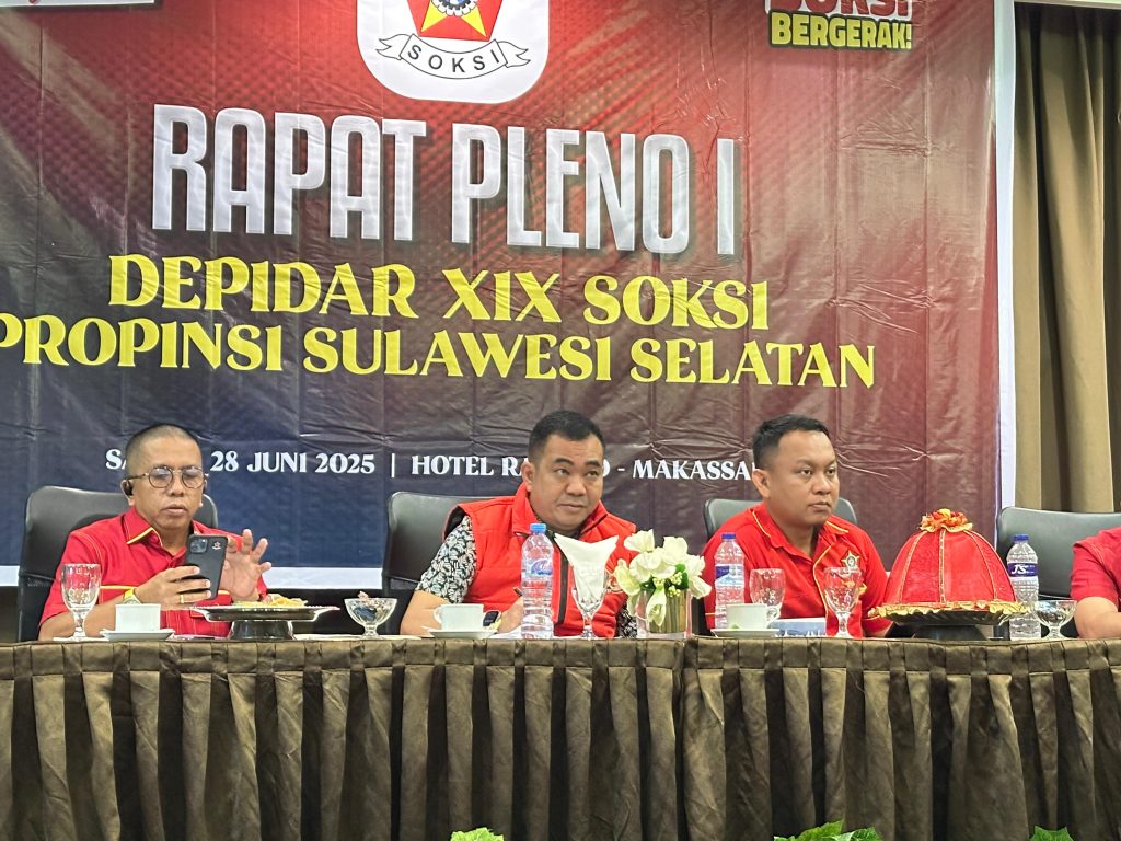 MAKASSAR – Dewan Pimpinan Daerah (Depidar) Sentral Organisasi Karyawan Swadiri Indonesia (Soksi) Sulawesi Selatan menggelar rapat pleno perdana di Hotel Ramedo, Jl Andi Djemma, Makassar, Sabtu (28/6/2025).
