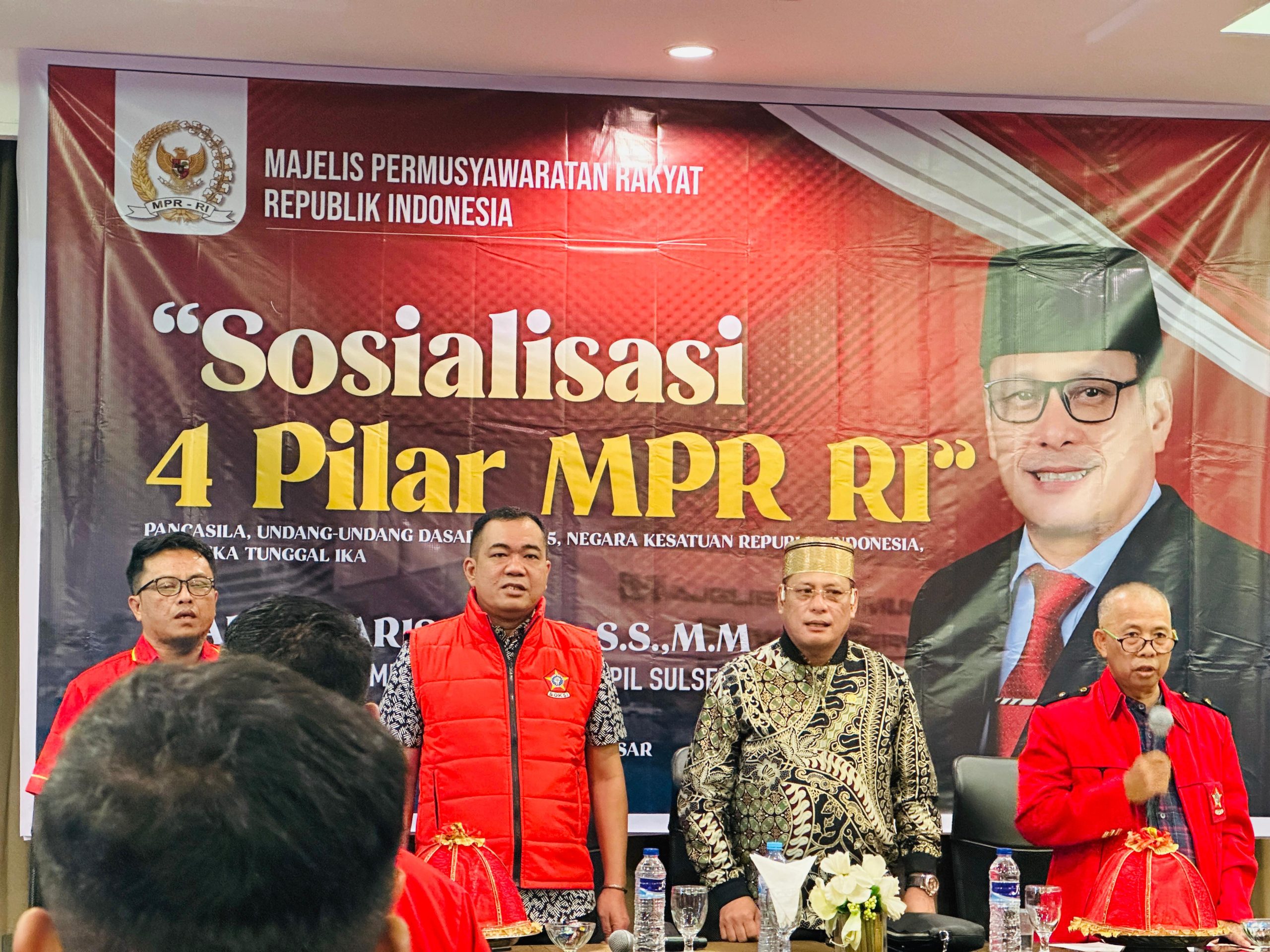 MAKASSAR – Anggota DPD/MPR RI Andi Waris Halid menggelar sosialisasi 4 pilar di Hotel Ramedo, Jl Andi Djemma, Makassar, Sabtu (28/6/2025).